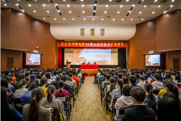 4月16日,校党校第40期入党积极分子培训班在三江会堂正式开班。校党委常务副书记、副校长、党校校长周更生、人事组织部部长仇存进、机械与电气工程学院副院长陈荣桂出席了本期入党积极分子培训班的开班仪式。开班仪式由人事组织部副部长张艳主持。本期培训班共有参训学员537人,分别在校本部、东山校区分党校和竹山校区分党校同时进行。