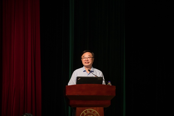 学工部部长、招就中心主任李云涛在大会上对2019年招生咨询业务进行了培训。他主要从江苏省高考政策介绍、志愿填报、考生咨询常见问题和招生宣传中几点提醒等四方面向全校教职工作了介绍。