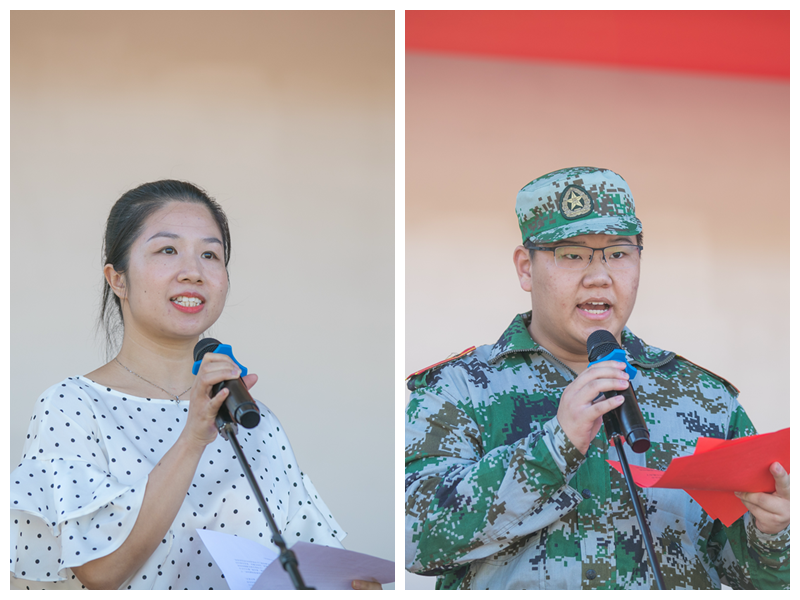 机电学院教师代表秦洪艳与建筑学院19级建筑学专业唐奕楠同学发言