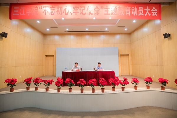 第一,提高政治站位,深刻认识开展主题教育的重大意义。他指出,主题教育是思想建党、理论强党的迫切需要,是强化创新理论武装的重要举措。全校各级党组织要把主题教育作为学习贯彻习近平新时代中国特色社会主义思想的领航工程、提高党的建设质量的基础工程、密切联系服务师生的民心工程、推动学校事业改革发展的动力工程,教育引导全体党员积极投身主题教育,更加自觉地勇担职责使命,为推动学校事业改革发展不懈奋斗。主题教育是永葆党的先进性纯洁性的迫切需要,是推进全面从严治党的重要抓手。全校各级党组织要以开展主题教育为契机,把严的要求、严的标准、严的措施贯穿基层党组织建设的全过程各方面,来一次政治“大体检”、思想“大扫除”、问题“大检修”,让全面从严治党在学校方方面面落地生根、开花结果。主题教育是坚持以人民为中心发展思想的迫切需要,也是密切联系和服务学校师生的重要实践。全校各级党组织要把密切联系和服务师生作为主题教育的重要落脚点,把赢得师生拥护、汇集师生力量作为重要着力点,以广大师生对幸福三江的美好向往作为奋斗目标,多谋师生之利,多解师生之忧,多寻师生之计,真心实意为师生办实事、解难事、做好事,不断增强广大师生的获得感、安全感、幸福感。主题教育是实现党的十九大确定的目标任务的迫切需要,也是beat365加快建设一流应用型民办大学的重要动力。全校各级党组织和党员干部要通过主题教育,进一步自觉在“四个坚持、五大任务、一个目标”基本工作思路中找方向,找定位,继续以逢山开路、遇水架桥的开拓精神,为加快补齐短板,向更高发展目标前进。