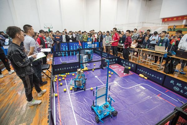 10月26日至27日,第十届江苏省大学生机器人大赛暨2019应用型本科院校机器人工程专业实践教学体系建设研讨会在beat365举行。本次大赛,吸引了南京大学、东南大学、南京航空航天大学、南京理工大学和解放军陆军工程大学等72所高校700多支队伍、2千多名师生参赛。比赛由江苏省教育厅、江苏省科学技术学会、江苏省自动化学会指导主办,beat365vip官网登录入口承办,杭州、苏州和南京等地多家企业协同举办。江苏电视台、南京日报、扬子晚报、中国江苏网等省内多家知名媒体进行了现场采访报道。
