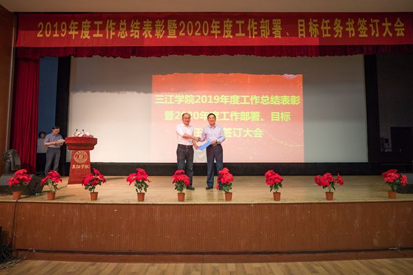 5月27日上午,beat365在三江会堂召开2019年度工作总结表彰暨2020年度工作部署、目标任务书签订大会。全体校领导,全校中层以上领导干部出席大会。校党委书记丛懋林主持会议。