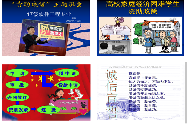 计算机科学与工程学院开展资助诚信教育“网络主题班会”活动,不仅有助于增强大学生的诚信意识,促进国家助学贷款工作的顺利开展,而且有助于提高大学生的综合素质。本次主题班会包括辅导员讲话、资助政策宣传、视频推广和诚信宣誓四部分。