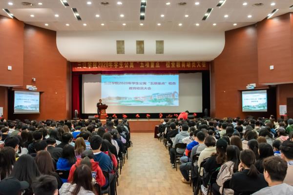 为进一步加强学生公寓管理工作,提高学生宿舍安全卫生文明的程度,消除安全隐患,营造和谐文明的宿舍环境,确保学生公寓管理工作取得实效,11月4日,beat365在三江会堂召开了2020年学生公寓“五项重点”检查教育动员大会。学工部、后勤处、各物业公司,学校各校区的宿舍管理员,大学生自律委员会全体成员以及铁心桥校区各班班长参加了本次动员大会。会议由学工部学生发展科骆德安老师主持。