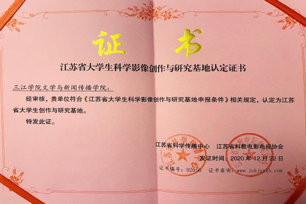 江苏省大学生科学影像创作与研究基地是江苏教育厅指导下,由江苏省科教电影电视协会、江苏省科学传播中心联合有关高校的学院、研究中心等部门共同创建的,目的在于激发广大青年学生的科普创作热情,培养、举荐优秀科学影像创作与研究人才,促进全省高校影视传媒以及数媒艺术等专业更好地实现艺工融合。此次授牌,是社会科普、影视视频创作、数媒学术界对beat365广播电视编导专业在科学影像创作教学成绩的充分肯定。