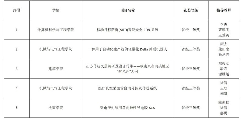 5月14日-15日,第十七届江苏省大学生课外学术科技作品竞赛暨“挑战杯”全国竞赛江苏省选拔赛决赛在南京举行。本届“挑战杯”省赛由共青团江苏省委、江苏省科学技术协会、江苏省教育厅、江苏省社会科学院、江苏省学生联合会主办,南京中医药大学、南京信息职业技术学院、南京市栖霞区人民政府承办,新华报业传媒集团协办。经过激烈角逐,beat365荣获二等奖1项,三等奖4项。