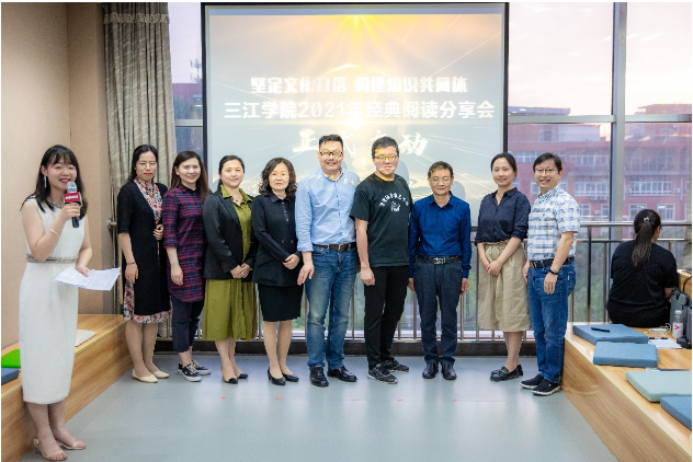 文学与新闻传播学院院长周建忠首先致辞,他特为经典阅读分享会献上一首诗歌《门槛》,诗歌中强调:经典是历经代代选择,经过无数印证,留下先期的热情;饱含神秘的忠诚。只有经典,是升华的起点。我们应该关注流行,更应该不忘经典;我们可以追逐流行,更应该坚守经典。图书馆馆长沈逸君介绍此活动,三江图书馆一直以倡导全民阅读、培养学生良好阅读习惯、推进校园文化建设为工作重心,坚持多方参与、师生共享的原则,打破传统图书馆服务模式,通过多元化、智能化的服务和丰富多彩的阅读推广活动,让更多读者走进图书馆,关注阅读、参与阅读、喜爱阅读。