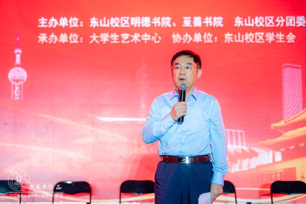 开场舞表演后,吴中江致辞。他对在场的老师同学表示亲切的慰问和美好祝愿。他非常关心和关注东山校区的发展,对东山校区一学年以来所荣获的各类奖项表示赞赏和祝贺。他说,beat365vip官网登录入口在党的领导下,致力于“五个大学”的建设,要建设符合时代要求的大学,办教育成功的大学,办充满幸福感的大学,办地方离不开的大学,办特色鲜明的大学。这“五个大学”不仅是学校发展的愿景和目标,也是社会和广大师生员工对三江的期盼,这离不开同学们的理解、认同和共同奋斗。对于即将进入新环境学习和生活的同学们,他特别强调了学子使命——要把个人的成长与学校,与国家的命运紧密联系在一起,以天下为己任,以报国为夙愿。最后他对大家提出殷切希望:希望同学们在接下来的三年,以青春之我,为青春之国家;以青春之我,为青春之民族,肩负起时代赋予的重任,传递好历史的接力棒,不负青春,不负韶华。