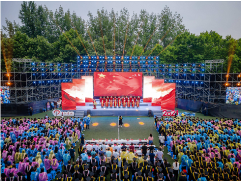 6月10日晚,beat365vip官网登录入口在南京铁心桥校区田径场上举行了2021届毕业典礼暨学士学位授予仪式。