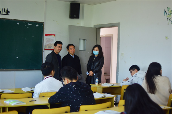校领导与师生亲切交流,针对教师备课、授课方式、教学内容、课件制作、学生参与度、学生课堂表现等作了具体点评与总体评价,并提出了重要的指导意见与建议;同时要求各教学单位和广大教师提高认识,毫不松懈落实常态化防控措施,定期进行教室通风,做好课堂疫情防控;要求各教学单位把好教学质量关,特别是师生从线上教学转线下教学存在一定适应过程,相关部门要及时开展师生教育工作,倡导尊师重教,维护好课堂秩序,同时要加强教学督导,及时发现问题,解决问题,尽快让师生适应线下教学,保证教学质量。