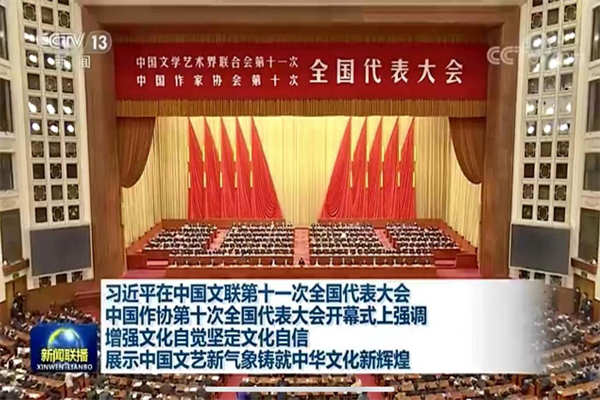 12月14日上午,中国文学艺术界联合会第十一次全国代表大会、中国作家协会第十次全国代表大会在北京人民大会堂开幕。中共中央总书记、国家主席、中央军委主席习近平出席大会并发表重要讲话。