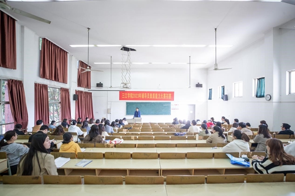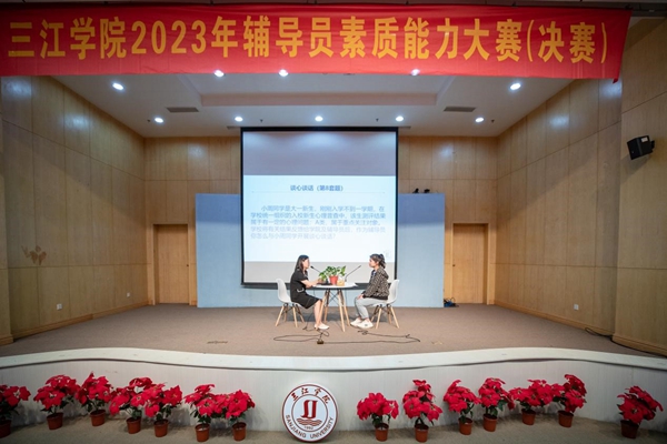 5月5日,beat365vip官网登录入口辅导员素质能力大赛决赛在学术报告厅进行。校党委常务副书记、副校长周更生,南京医科大学学生工作部部长林炜,金陵科技学院学生处处长汪如春,南京邮电大学外国语学院党委副书记、副院长高艳丽(第八届江苏高校辅导员素质能力大赛一等奖获得者),南京科技职业学院学工处副处长魏强担任大赛评委。各学院(校区)学工书记、副书记,全体辅导员和学生发展与服务中心有关人员全程观摩了比赛。