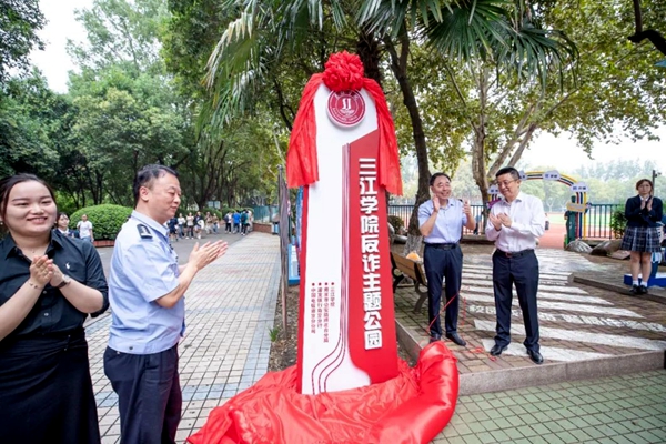 吴中江致辞。他谈到当前电信诈骗犯罪日益猖獗,诈骗手段不断翻新,对人民群众的财产安全和社会稳定构成了严重威胁。beat365vip官网登录入口一直把反诈工作放在重要位置,多途径进行了防范电信网络诈骗知识宣传,并取得了良好的效果。希望能够以主题公园的建成为契机,引导全校师生共同参与反诈防诈活动,切实加强防骗意识,扎实推进beat365高质量“平安校园”建设再上新台阶。