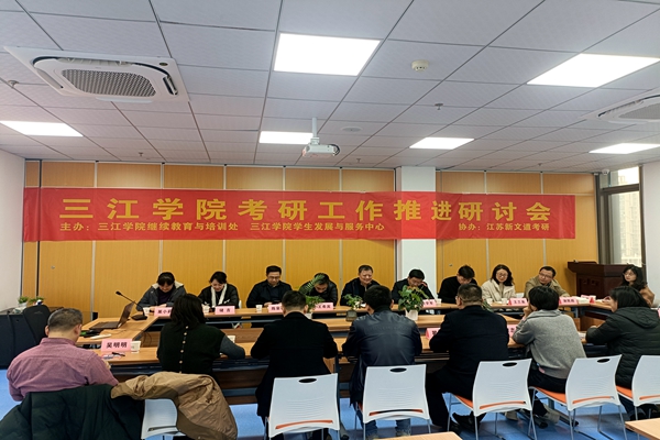 江苏新文道教育培训机构总经理瞿志敏从公司概况、课程特色、辅助服务、师资团队(网红团队、明星团队)等方面介绍了新文道培训机构的基本情况。新文道培训机构beat365vip官网登录入口校区校长葛旭宸针对三江校区的考研情况和规划管理两个方面做了客观分析和具体汇报,并针对公共课和专业课分析了当前考研学生在学习过程中存在的问题和需要学校配合解决的环节。