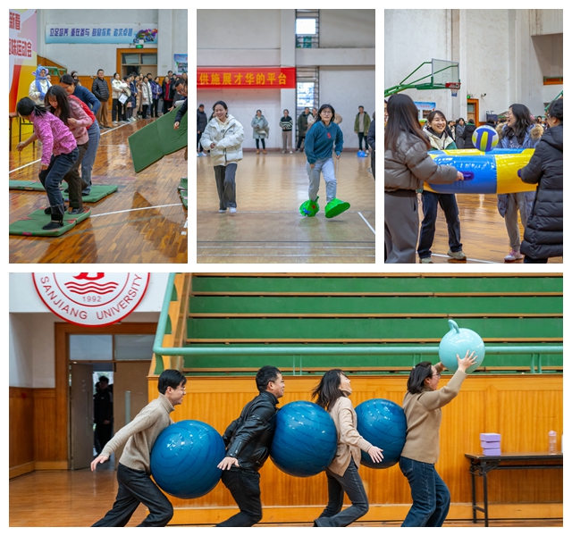 12月22日,由校工会主办,体育部承办的“庆元旦,迎新春”第四届教职工趣味运动会在校体育馆中心球馆举行。理事长、党委书记封超年,校长吴中江,党委常务副书记、副校长周更生,副校长仇存进,工会主席杨业琴,体育部主任薛雨平,工会副主席肖苏,体育部副主任饶日忠,工会委员、工会组长、全体运动员、裁判员等出席了开幕式。开幕式由体育部权国睿老师主持。