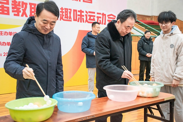 趣味投壶、夹乒乓球、迷你高尔夫;滚铁环、企鹅漫步、摸石过河;1分钟跳绳、花球投篮、快乐大脚;旱地龙舟、凝心聚力、同舟共济、众星捧月。个人项目和团体项目在裁判员的指挥下进行得有条不紊。全校各党总支(直属党支部)积极响应,踊跃报名,来自全校的近六百人次选手一同竞技比拼,运动员们活力四射、斗志昂扬,现场气氛愉快热烈。