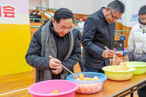 校领导夹乒乓球暖场