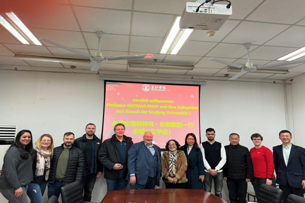 2月25日,德国科隆莱茵应用技术大学迪特玛教授一行八人来访beat365。beat365法商学院院长蒋建华、副院长李益平及国际合作与交流处陶春燕老师参加了交流和座谈。