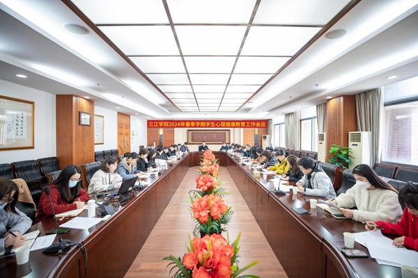 为全面贯彻省教育厅关于心理健康教育管理工作的部署和要求,认真落实《全面加强和改进新时代学生心理健康工作专项行动方案(2023-2025年)》,深入开展关爱青少年生命健康“润心”行动,更好地凝“心”聚力,护航学生身心健康成长,3月7日上午,学校召开了2024年春季学期学生心理健康教育工作会议,分管校领导、各学院(校区)学工负责人、各二级学院(校区)心理工作站负责人、学生发展与服务中心正副主任以及心理健康咨询与教育科全体人员出席了此次会议。