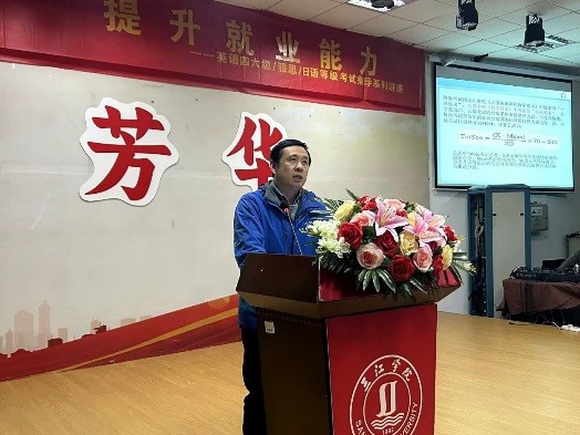 3月25日至28日连续四日及4月1日晚分别在东山校区报告厅和铁心桥校区学术报告厅分别或同时举办《如何高分通过大学英语六级考试》、《大学英语四级题型解析与模拟训练》、《雅思口语高分突破/日语JLPT N3-N2高阶通关》五场讲座。本次系列讲座均由舜德教育培训机构邀请的资深讲师们主讲,他们都拥有丰富的海外留学经历,分别从事大学英语或日语教学、雅思托福教学10年以上的教学经验。讲座中,主讲老师们结合历年真题讲解了如何做好听力、阅读、写作和翻译,并就同学们提出的问题以及如何提高考试通过率等话题与同学们进行了互动交流。现场的同学们都表示此次讲座让他们受益匪浅,更加明确备考方向,更有信心迎接考试。
