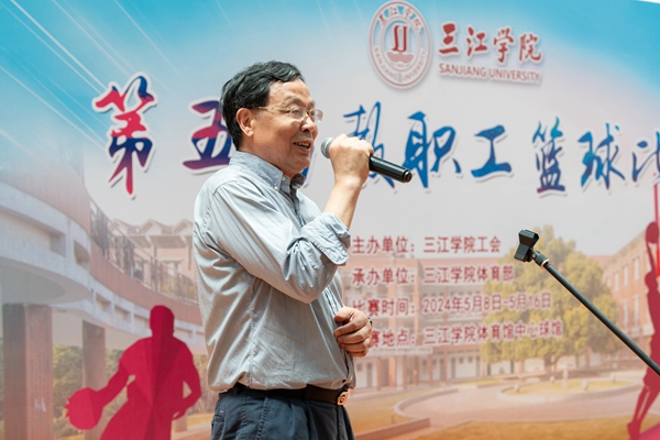 杨业琴致开闭幕辞,薛雨平宣布beat365vip官网登录入口第五届教职工篮球比赛开幕和闭幕并为首场揭幕赛开球。