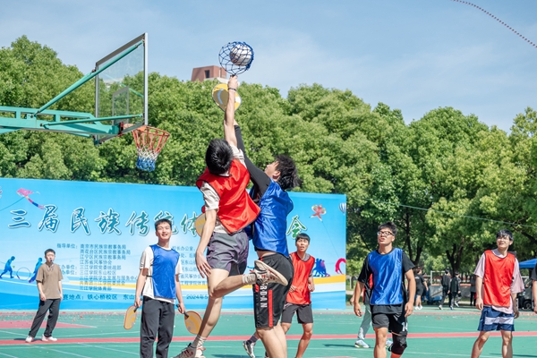 本届民族传统体育运动会设有珍珠球、板鞋竞速、踢毽子、跳绳、投壶、太极拳、滚铁环、打陀螺、蹴球、押加等10个民族传统体育项目。参赛学生共有900余名。各代表队在大赛组委会的有序组织下展开了激烈角逐,三江学子们在赛场上挥洒着汗水,让大家感受到了属于他们的飞扬青春和蓬勃朝气。