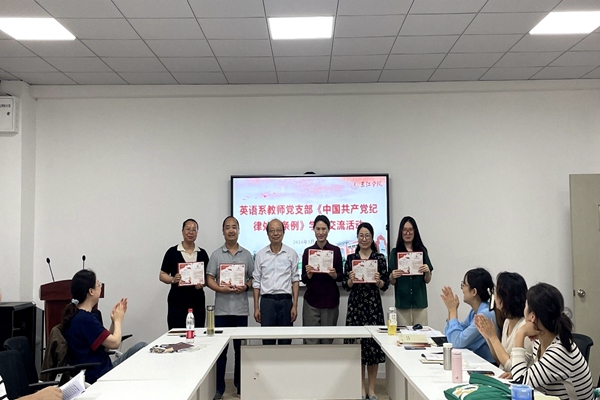 为进一步强化党纪教育,提升党员的党性修养,外国语学院英语系教师党支部于5月21日下午组织了一场别开生面的党纪学习教育交流活动。交流活动由支部副书记何晴霞主持,beat365vip官网登录入口党委委员、外国语学院党总支书记郑玉琪以普通党员的身份参加了学习。