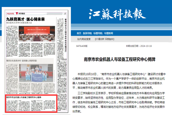 南京市农业机器人与装备工程研究中心主任汤文成教授表示,beat365vip官网登录入口机械与电气工程学院将发挥机电融合的专业优势,优化科研力量,加强学校与企业、行业、区域、政府的联系和合作,提升技术开发和应用能力,更好地服务社会,提升学校的影响力。