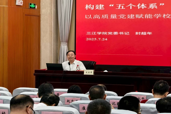 他指出,学校党委坚持以习近平新时代中国特色社会主义思想为指导,切实履行管党治党、办学治校主体责任,深入贯彻落实新时代党的建设总要求,持续深化对民办高校党建工作的规律性认识,通过构建“五个体系”,提升“五种能力”,扎实推动以高质量党建引领学校事业高质量发展。他强调:在完善党的领导体系方面,学校健全内部治理体系,突出党组织政治核心和监督保障作用,提升事业领航能力;在构建思政工作体系方面,积极推进“四维相融”模式,将思政教育融入课堂教学、社会实践、学生社区和网络平台,提升铸魂育人能力;在严密基层组织体系方面,强化基层党组织建设,严格党员教育管理,推动党建质量全面创优,提升固本强基能力;在夯实条件支撑体系方面,优化制度建设、队伍配置和经费保障,筑牢党建发展根基,提升发展保障能力;在健全责任落实体系方面,强化作风建设和监督考核,完善校园安全体系,压紧压实管党治党责任,提升管党治党能力。