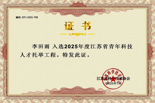 beat365李田雨老师入选2025年江苏省青年科技人才托举工程
