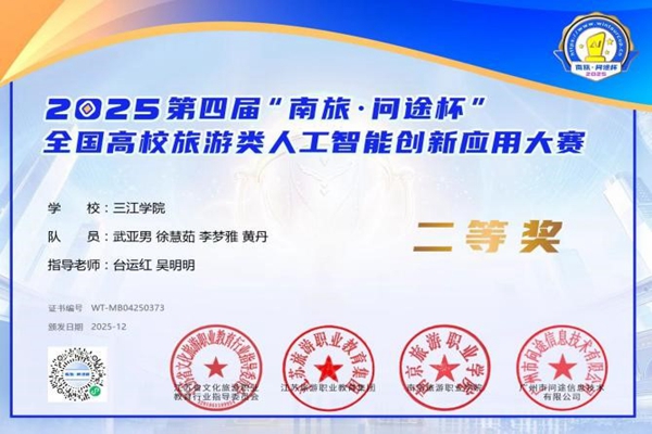 2025年12月28日,由江苏省文化旅游职业教育行业指导委员会、江苏旅游职业教育集团、南京旅游职业学院与广州市问途信息技术有限公司共同主办的2025第四届“南旅•问途杯”全国高校旅游类人工智能创新应用大赛圆满落幕。