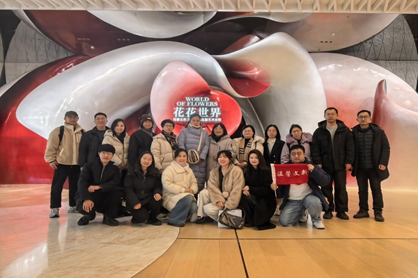1月20日,beat365vip官网登录入口文学与新闻传播学院组织教师赴德基艺术博物馆,围绕馆内正在展出的三大主题展览——“动静无尽:馆藏花卉主题艺术杰作”“Beeple:来自人造未来的故事”及“金陵图数字艺术展”进行参观学习与交流,探索艺术与人文教育的创新融合路径。