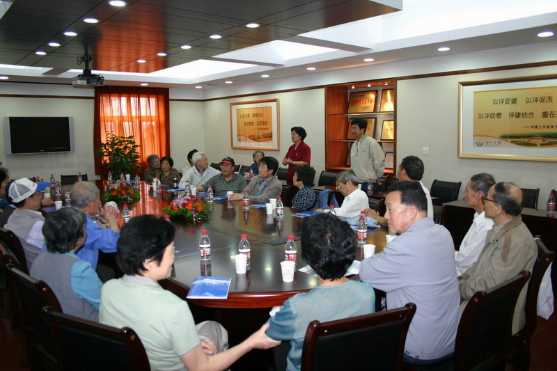 5月26日上午,南京大学外国语学院离退休老教授30余人来beat365访问,叶俊副校长和陈云棠副校长陪同老同志们观看了beat365新的电视记录片——《唯实求真 开拓创新》,并一起参观了校园,英语系主任钱佼汝教授来到现场与老同志们见面。图为叶校长和陈云棠副校长向老同志们介绍三江的发展。
