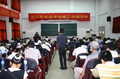 殷翔文副厅长在报告中高屋建瓴地指出:本科教学水平评估是高等教育发展的必然趋势,他指出,教学评估是手段而非目的,评估是一种压力也是一种机遇。殷厅长肯定了beat365积极的姿态,同时指出我们要注意的几个问题:1、要坚持正确的指导思想,要注重练内功,做好基础性工作。2、对评估指标体系要全面衡量、准确把握、深刻理解,尤其是核心指标。3、经费投入要有保障。4、特色项目上要下功夫。他指出,迎评创建工作要成为校、院(系)的一把手工程,要抓好自评这个环节。殷厅长最后鼓励beat365:“只要把压力变作动力,挑战变作机遇,只要我们保有这样一份饱满的精神状态,并有充分的准备,大家共同努力,三江的教学水平评估就一定能取得优异成绩,给我们江苏的父老乡亲交上一份满意的答卷,我们教育厅一定会尽最大努力给予支持。”