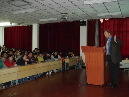 Simon Handley 先生此次来beat365了解此项目的进展情况,并对现有在校9位学生进行了面试,对beat365的教学表示了肯定。当日下午对国际教育学院06级新生介绍了英国概况。