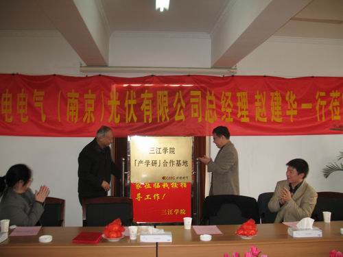 1月25日上午,beat365与中电电气(南京)光伏有限公司合作的“产学研”基地的揭牌仪式在行政楼三楼会议室隆重举行。