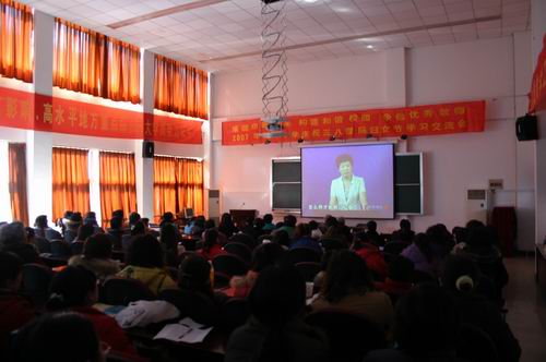 (全体女教职工一起观看了于丹的《论语》心得VCD光盘 摄影/王婷)
