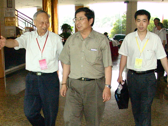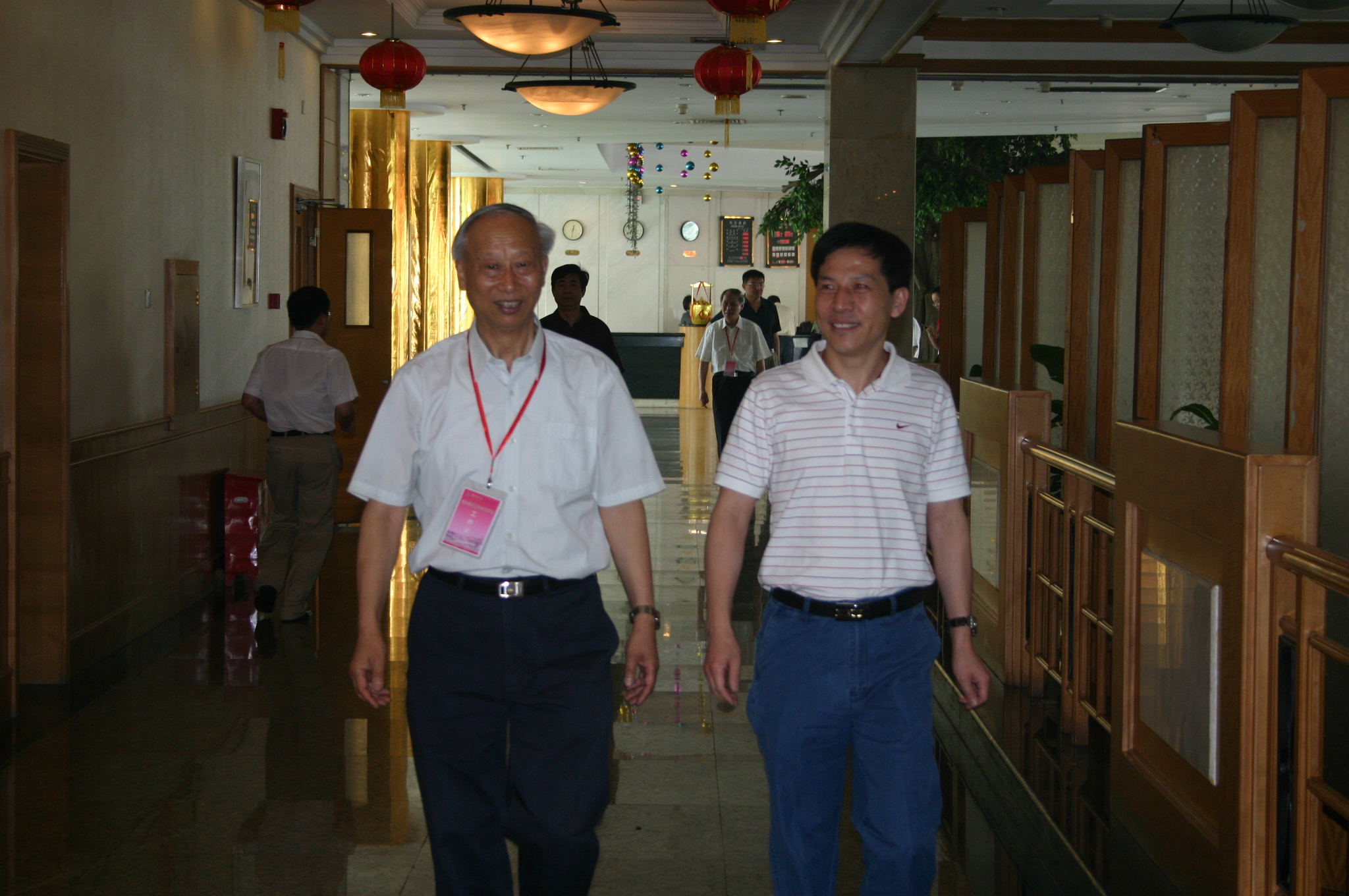 陈万年院长迎接陪同教育部评估中心院校评估处处长刘振天教授(右)走进宾馆