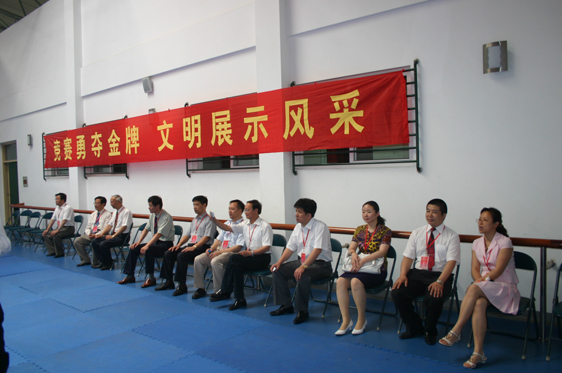 陈万年院长陪同评估组专家饶有兴趣地观看学生跆拳道课