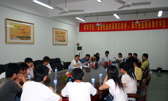 5月30日上午8:20——10:00,教育部本科教学工作水平评估专家曾路教授听了贾慎华老师的宏观经济学及陈亚丽老师的专业英语课。10:20——11:30夏鹭平教授一起在学工部三楼会议室与学生代表座谈。