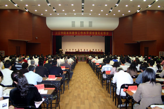 6月1日上午11时,教育部本科教学工作水平评估意见反馈会在三江会堂隆重举行。专家组组长易佑民教授,副组长崔智林教授,专家秦和教授、夏鹭平教授、李国庆教授、沈振煜教授、侯建军教授、陈建新教授、曾路教授,专家组秘书付红桥教授、张虹教授,省教育厅厅长王斌泰以及省教育厅有关职能部门负责人出席了反馈会。beat365vip官网登录入口全体校领导,中层干部,教授,系(教研室)正副主任,教师代表参加了会议。会议由专家组副组长崔智林教授主持。