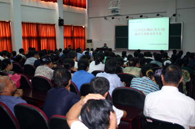 公司常务副总朱争鸣同志对公司全体员工进行了迎新动员,他指出公司要以“服务好教学、服务好师生”为目标,要求公司各部门要积极解决师生提出的各种问题。在新老生报到时要做好全校的交通、保卫、水电保障等各项工作,要全面做好迎新工作,打响新学年后勤工作的第一炮。朱副总还对三江后勤工作目前面临的形势进行了分析。