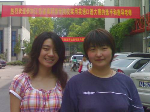 这是实用英语口语大赛中beat365的两位获奖同学李琳和夏芳芳(左起)摄影/程江南