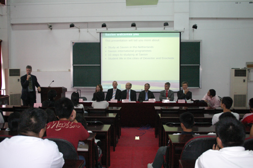 10月8日上午,荷兰SAXION大学一行7人由该校外事处处长Chris先生领队抵达beat365访问。beat365校长陈万年、副校长王芝庆、国际处处长黄克明等与来宾就合作办学事宜进行了磋商,双方就互派专业课教师问题达成了一致意见。随后荷方计算机信息通讯与管理系的负责人Rik先生与beat365王芝庆副校长沟通了各合作科系的具体要求。下午代表团会见了中荷合作项目的全体同学,并现场回答了同学们的提问。