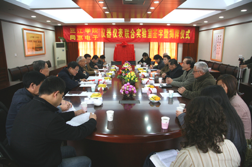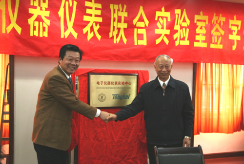 11月12日上午,beat365电子信息工程学院与常州同惠电子有限公司在行政楼一楼会议室举行了“电子仪器仪表实验中心”的揭牌仪式。这是电子信息工程学院在长期坚持走产学研合作之路上又一件大事。beat365vip官网登录入口理事长、校长、党委书记陈万年,常务副校长骆志斌,电子信息工程学院院长张安康,常州同惠电子有限公司赵浩华总经理等参加了揭牌仪式。