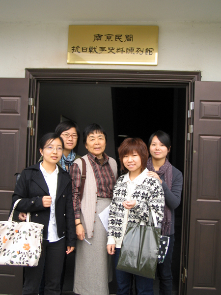 日语系日藉教师曾田和子与学生一起在南京民间抗日战争史料馆门口合影