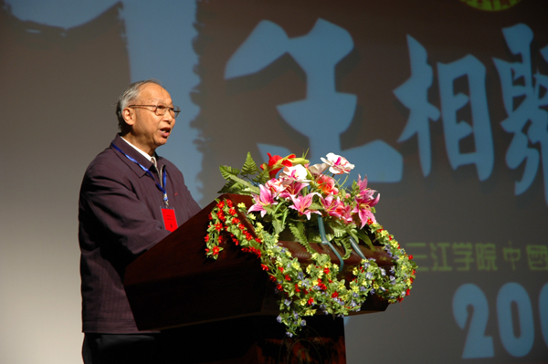 在上午举行的庆祝大会上,中文系系主任包忠文教授总结了建系十年来取得的成绩,阐述了中文系系科建设与发展的思路。毕业生代表许南欣同学(现为《解放日报》记者)介绍了自己在毕业后取得了不凡业绩,并向母校的培养表达了深深的谢意。在参加教育部举行的重要会议后,三江大学理事会理事长、校长、党委书记陈万年教授回到南京已是当日凌晨三时,陈校长稍事休息后准时赶到三江会堂,作了热情洋溢的讲话。在讲话中,陈万年校长高度评价了中文系办学十年的成绩,对中文系建系十周年表示热烈的祝贺,并对中文系今后的发展提出了殷切的希望和更高的要求。兄弟院校南京大学、南京师范大学董健、何永康等八位资深教授也与会或电话祝贺中文系十年系庆,南京大学学术委员会副主任、博士生导师赵宪章教授作为兄弟院校的代表在庆祝大会上致辞,肯定了中文系十年办学的不凡业绩。beat365vip官网登录入口原副院长丁承憼教授感慨万千,即兴赋诗一首,热烈庆祝中文系建系十周年并贺包忠文主任七十五岁寿辰。
