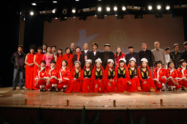 中文系十周年系庆文艺演出(院系领导和演职人员的合影)