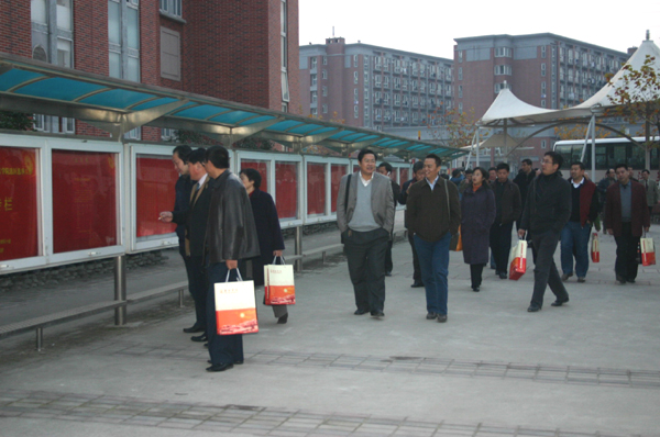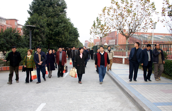 会议结束后全体与会代表一起合影留念。王志强总务长带领与会代表参观了beat365食堂、会堂、体育馆、一教楼等学校建筑设施,并一一为代表们讲解介绍,王芝庆副校长全程陪同。