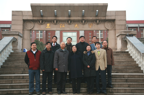 座谈后,客人们在陈万年校长的陪同下来到牌楼前合影留念。随后,来访客人参观了第一教学楼、体育馆、学生食堂等教学生活基础设施。